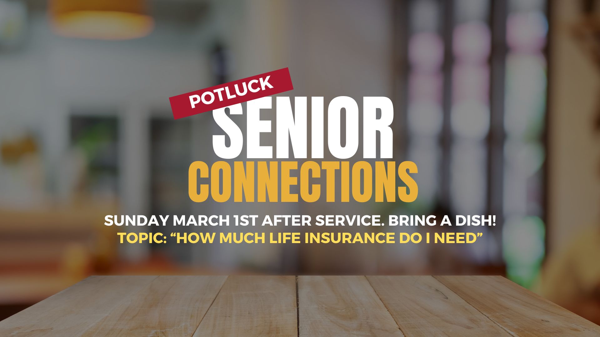 Senior Connections is gathering again on Sunday, March 1st after service — and you're invited. Bring a dish to share and join us for a potluck and meaningful conversation led by Kathy Stanka: "How Much Life Insurance Do You Need?" At Christ's Church of Yukon, we believe in walking through every season of life together — and this is one of those important conversations.